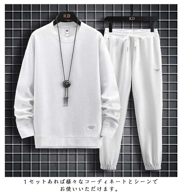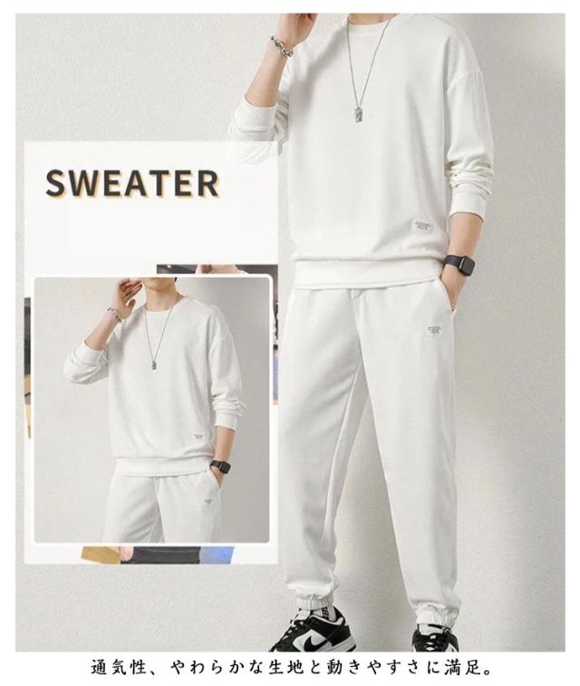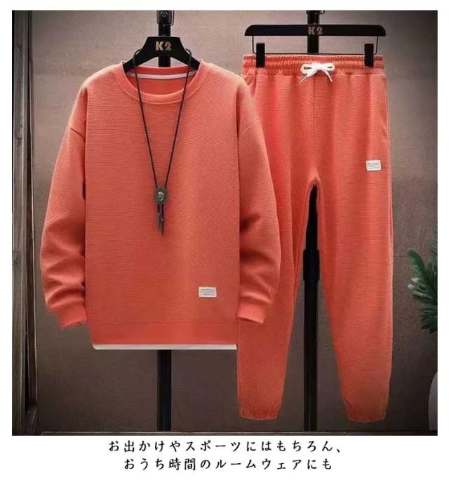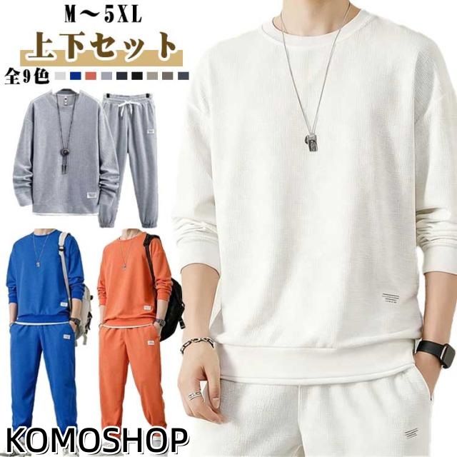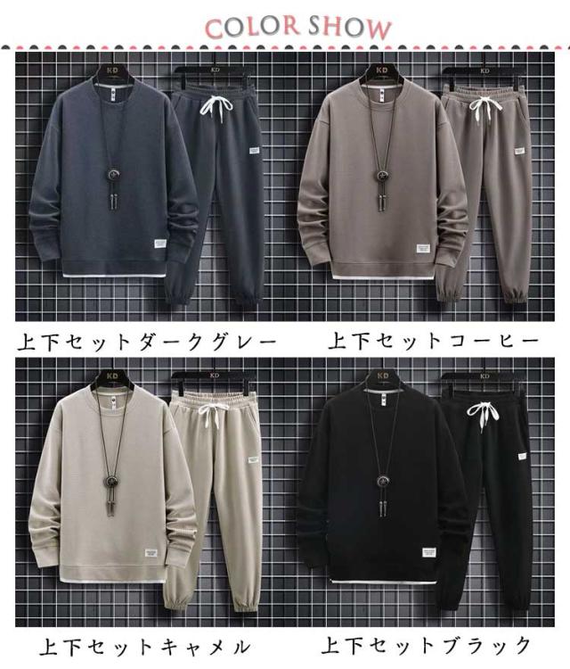 メンズ メンズ スウェットパンツ 上下セット 秋服 スポーツウェア スウェット 長袖 ジャージ 重ね着風 ズボン 無地 スエット 春秋 秋冬 クルーネック 春物 部屋着 運動着 大きいサイズ ルームウェア 外出