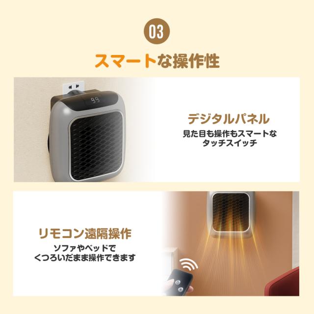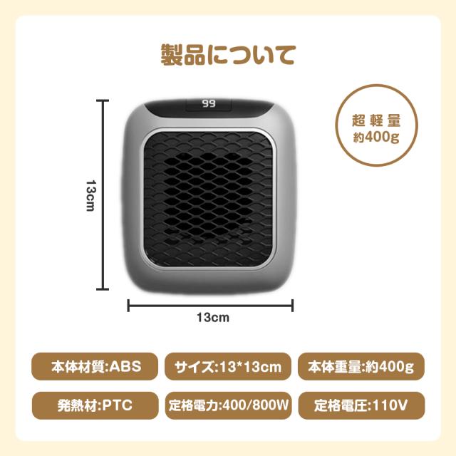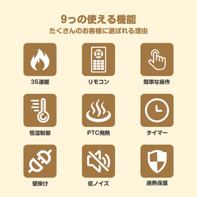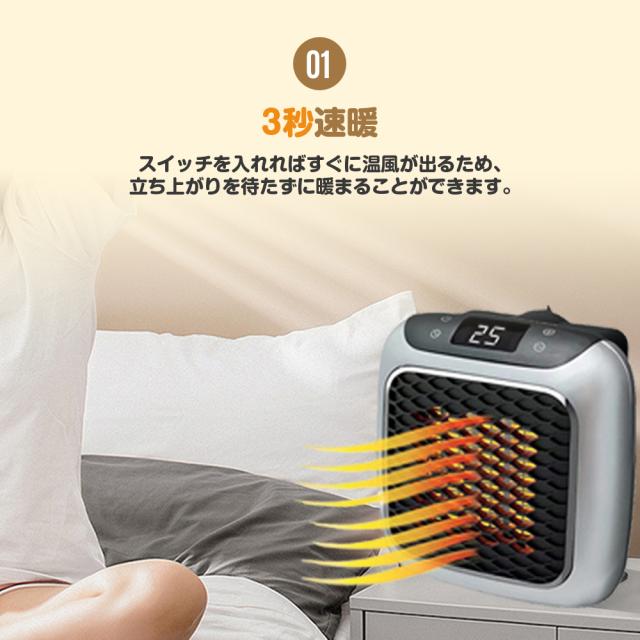 安全機能:遠隔制御、温度数値表示、12時間タイマー、3秒速熱、過熱保護、調整可能サーモスタット、安全省電力、静かな操作