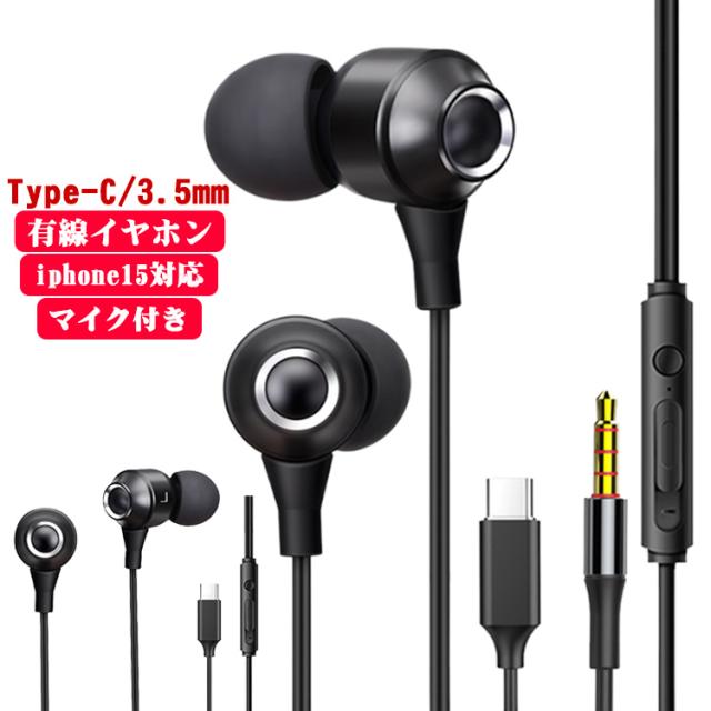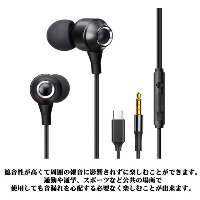 タイプc USB イヤホン マイク付き イヤフォン Type パソコン リモコン付き C スマホ対応 iphone15 高音質 ヘッドホン 3.5mm カナル型 ヘッドセット pc用 有線イヤホン テレワーク 通話 アンドロイド