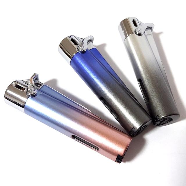 ガスライター シリンダージェット ガス注入式 3カラー かわいい グラデーション ターボライター おしゃれ 女性 コンパクト ガス視認窓付き アウトドア 1本炎 ダックビル ライター 屋外 喫煙具 レディース メンズ