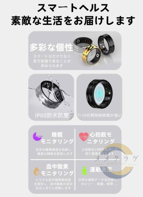 スマートリング 健康管理 日本製センサー心拍数 血中酸素 睡眠 実用的 IP68M防水 Android/iPhone対応 全3サイズ プレゼント 敬老の日