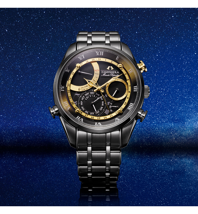 | 仕様 | 日常生活用防水 ミニッツリピーター機能 パーペチュアルカレンダー アラーム1・2 ローカルタイム機能 デュアルタイム機能 24時間表示機能 日付・曜日表示 文字板:電気鋳造 数量限定250本 日本製 |