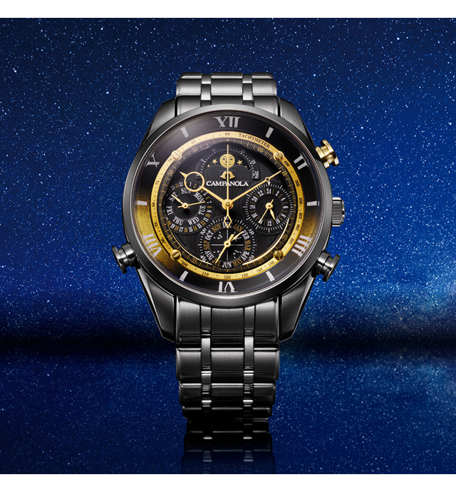 【選べるノベルティ付】シチズン カンパノラ グランド コンプリケーション 25周年記念限定 「星響(ほしのひびき)」 クォーツ 電池式 腕時計 メンズ 数量限定 クロノ CITIZEN CAMPANOLA AH4084-51E 高級 おしゃれ 防水 文字盤 大きい プレゼント 男性 実用的