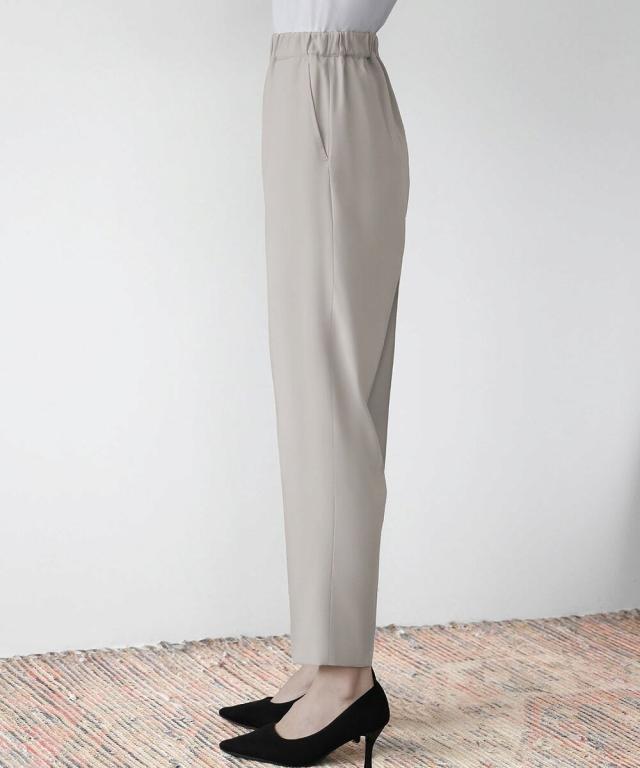 パンツは裾に向かって細くなるテーパードシルエットで、脚長効果・美脚効果が期待できる一枚です。
