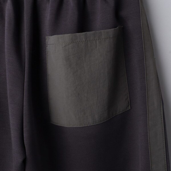 前面や後ろに施されたラインディテールと、背面のポケットが異素材でアクセントになっており、シンプルながらも洗練された印象の仕上がりです。