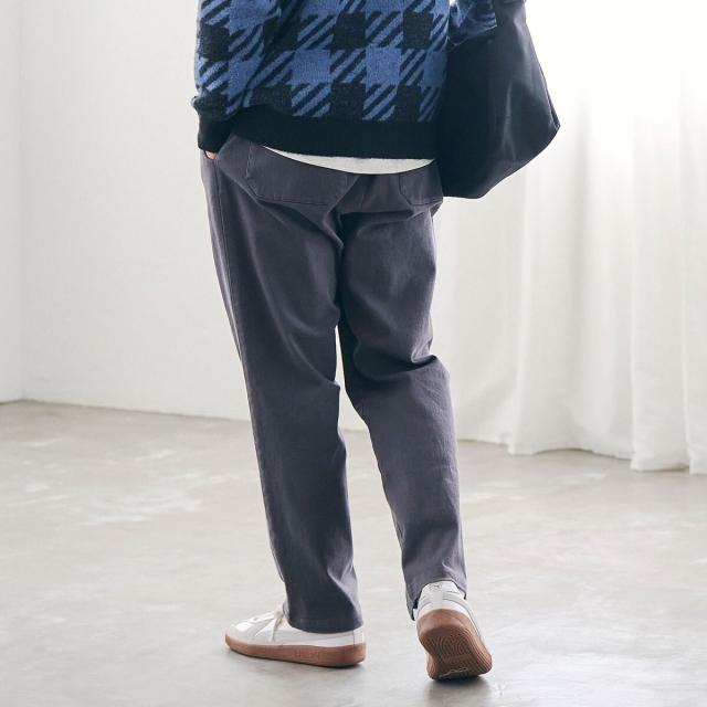 ストレッチ性を備えており、腰回りはゆったりとしたテーパードシルエットで、動きやすさとすっきりとした見た目を両立。