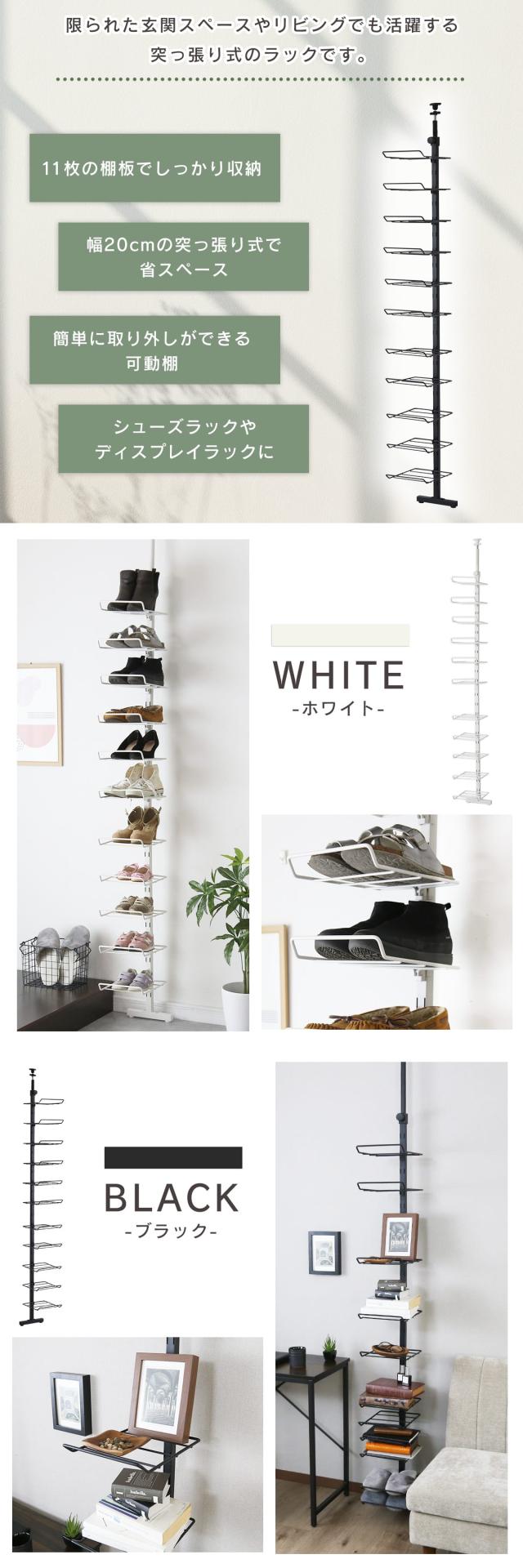 シューズラック ラック 省スペース スリム 突っ張り つっぱり式 幅30 可動棚 壁面収納 玄関収納 隙間収納 突っ張り収納 ディスプレイラック ウォールラック 靴 大容量 11段 ブラック ホワイト モダン シンプル リビング 玄関 組立簡単 北欧 エアラ スペパ ドリス 送料無料