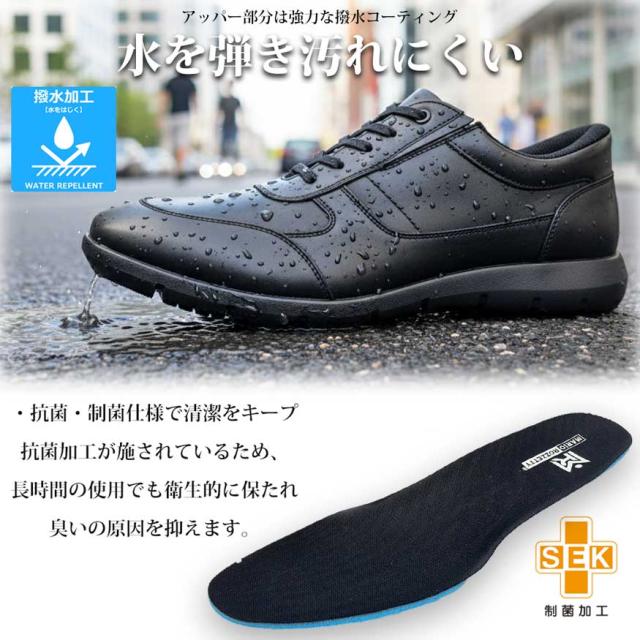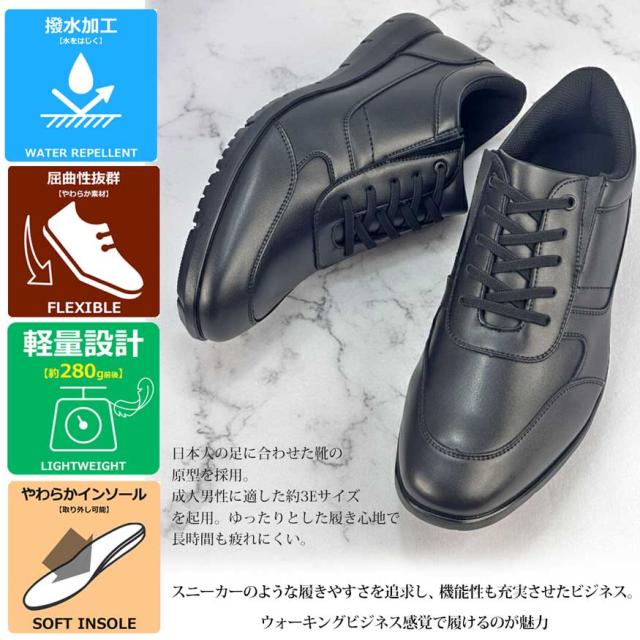 ビジネスシューズ メンズ スニーカー ウォーキング 革靴 レースアップ サイドゴア 軽量 幅広 3e ゆったり 撥水 抗菌 屈曲性 防滑 コンポジションレザー 通勤