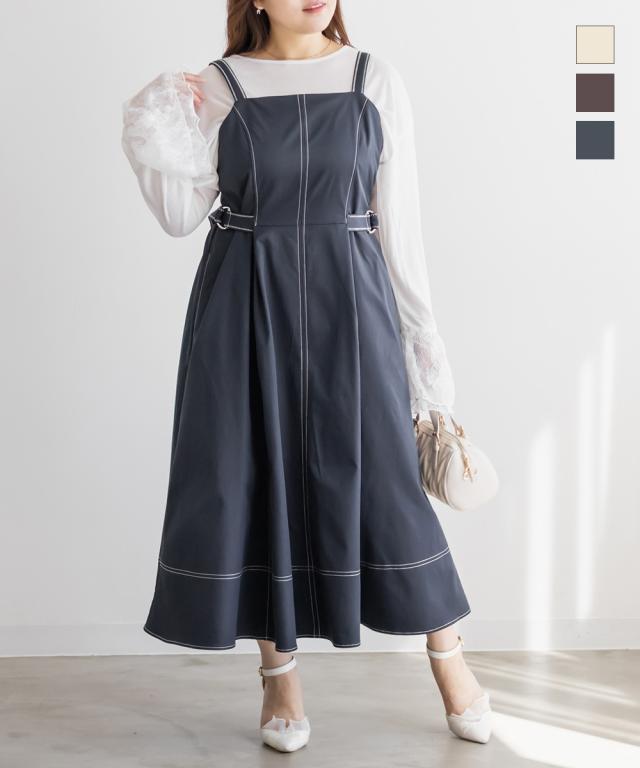 大きいサイズ/レディース/LL/3L/4L/CLETTEオリジナル配色ステッチサイドベルトワンピース
