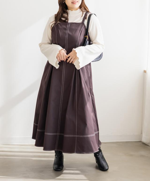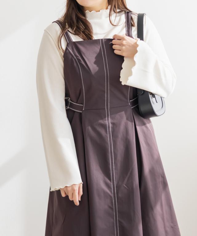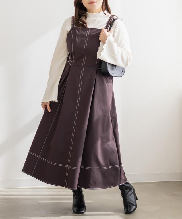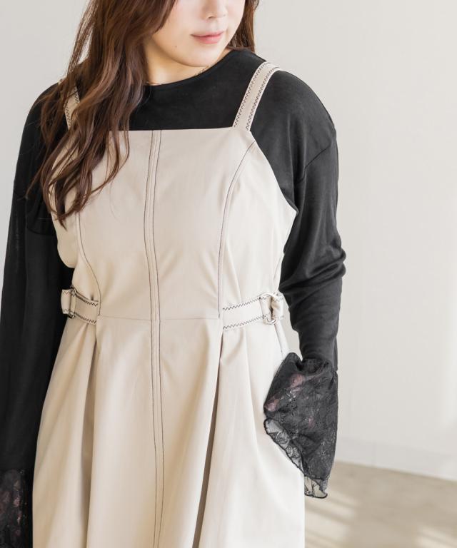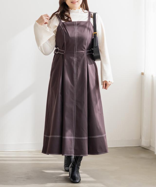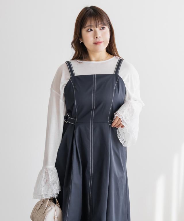 | 3Lサイズを着てほどよくゆとりがあり、窮屈感のないちょうどいい着心地です。配色ステッチが全体を引き締めてくれるので、シンプルながらもスタイルアップして見えます♪ サイドのベルトでウエストマークできるのも嬉しいポイントです◎しっかりハリのある生地で、シルエットを綺麗に保ってくれてボディラインも拾いにくいです! きれいめにもカジュアルにも使えるデザインで、1枚でコーデが完成します。 |