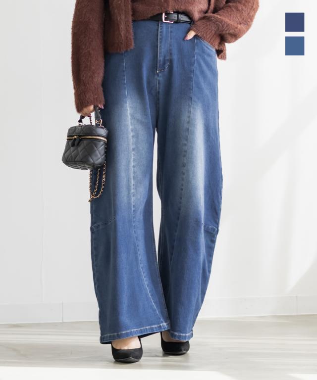 大きいサイズ/レディース/LL/3L/4L/裏起毛ワイドカーブデニムパンツ