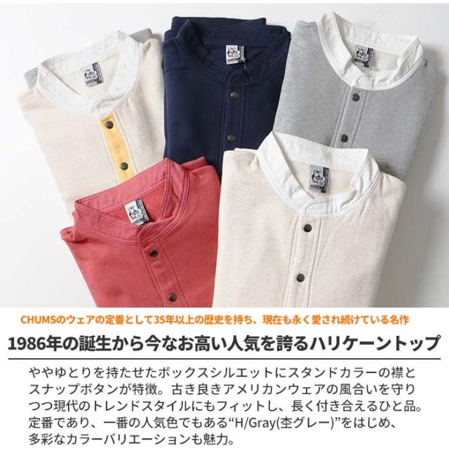 チャムス ハリケーントップ CH00-1414 スウェット トレーナー ヘンリーネック 裏起毛 起毛 長袖 コットン 綿 綿100 メンズ 男性 大人 シンプル カジュアル ブランド アウトドア キャンプ 春 秋 冬 プレゼント CHUMS 父の日