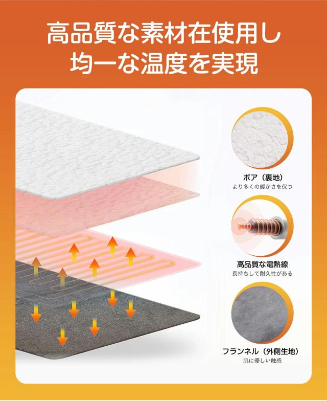 シルクのような肌触りの生地と高品質炭素繊維ヒーターを採用。最高温度45℃まで到達可能。サイズ30×29cm。