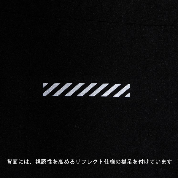 背面には、視認性を高めるリフレクト仕様の襟吊を付けています。