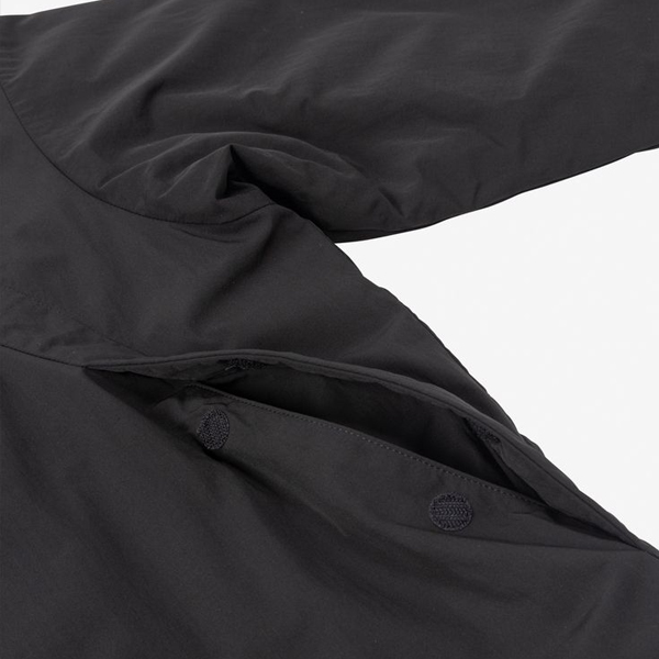 袖口は、腕まくりや締め込みがしやすいゴムシャーリング+タブ仕様。