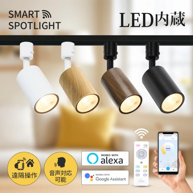 【新発売】スポットライト スマートライト アプリ操作 リモコン操作 LED一体型 調光調色 100形相当 電球色 自然色 昼白色 間接照明 ダクトレール用 おしゃれ 工事不要 簡易取付 リビング ダイニング キッチン 寝室 子供部屋 店舗 Wi-Fi接続 ライティングレール