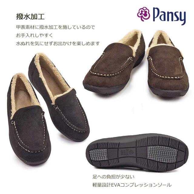 パンジーハーツ ぱんじー ボア モカシン ローファー レディース 靴 カジュアル 軽量 婦人 お出かけ 靴 黒 ブラック ブラウン ギフト プレゼント 旅行 軽い