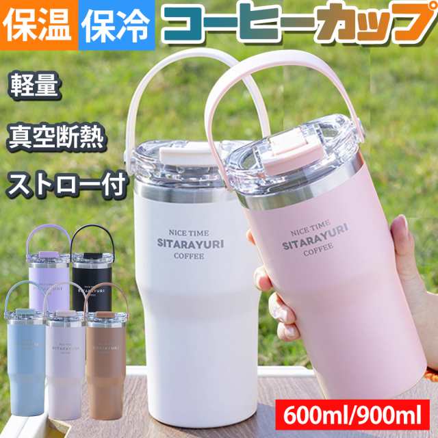 タンブラー ホルダーおまけ 保温 保冷 蓋付き こぼれない ストロー 持ち運び タンブラー 水筒 コーヒー 大容量 ステンレス