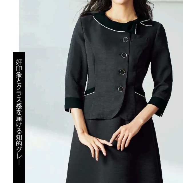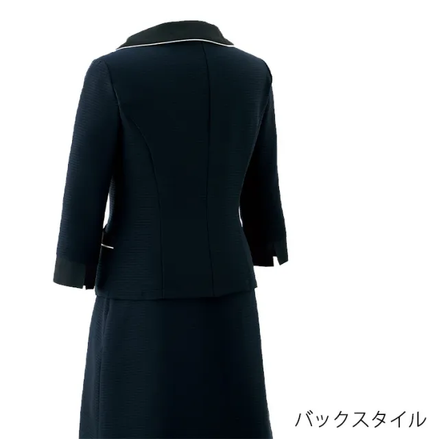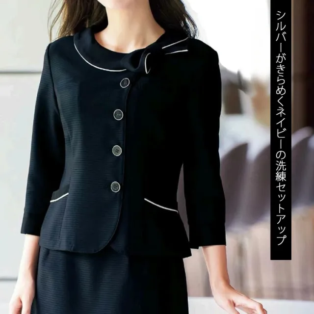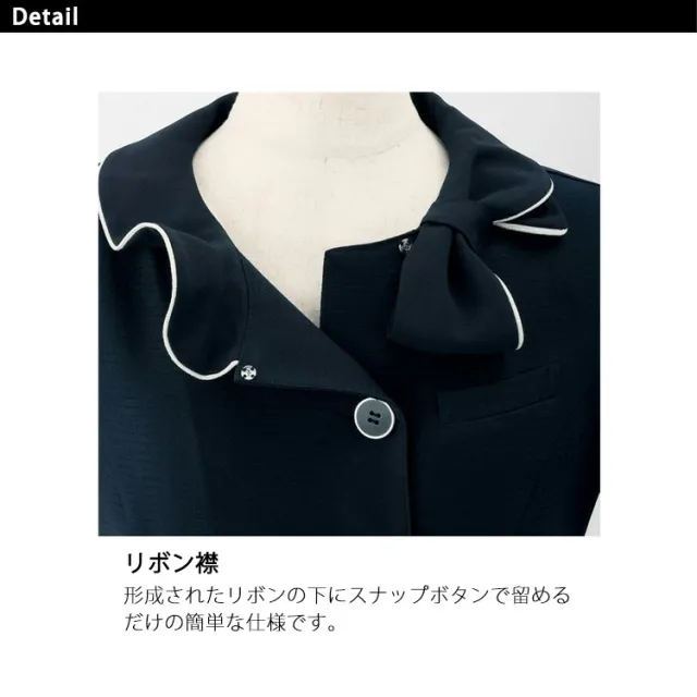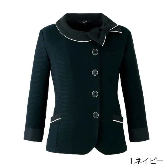 アンジョア レディース 春夏 ジャケット 七分袖 パイピングデザイン リボン ネイビー オフィス 事務服 制服 接客 かわいい ビジネス ジョア 26606