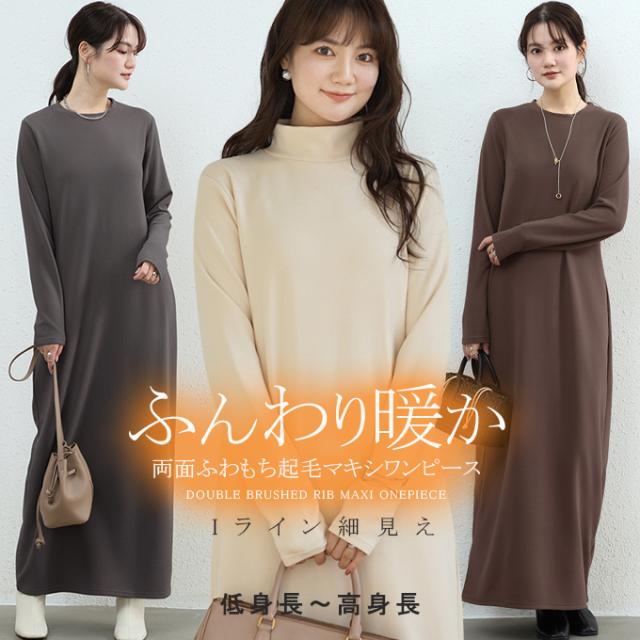 半額クーポン配布中、1990円、選べる着丈 裏起毛 マキシワンピース 両面裏起毛 ふんわり暖か リブ レディース 秋冬 長袖 体型カバー シンプル 無地 カットソー ワンピース ストレートライン ワンピース 秋冬 裏起毛 大人カジュアル 楽ちん 着回し おしゃれ お出かけ