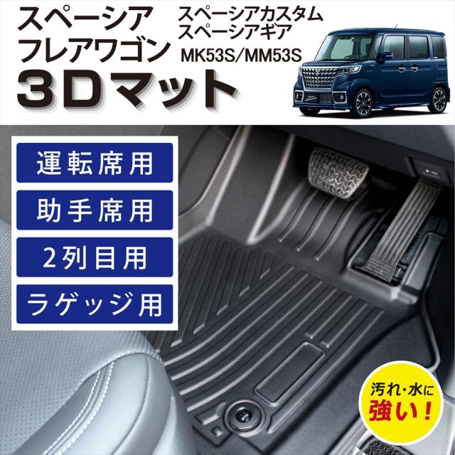 【車種専用設計】 スペーシア スペーシアカスタム スペーシアギア フレアワゴン 専用 運転席 助手席 2列目 ラゲッジ フルセット 3D フロアマット ラバーマット ピッタリフィット 防水 防汚 傷防止 カーマット トレー 内装 立体マット 床マット 車種専用 TPE素材 SUZUKI MAZDA