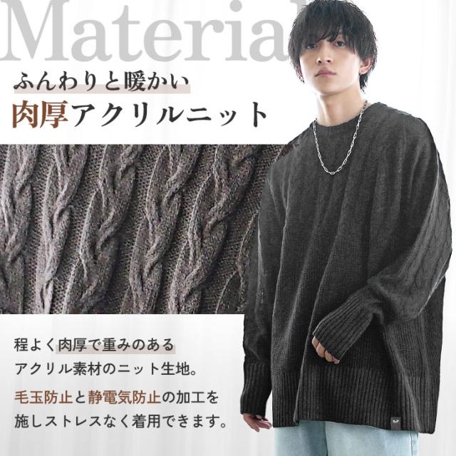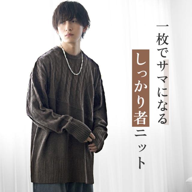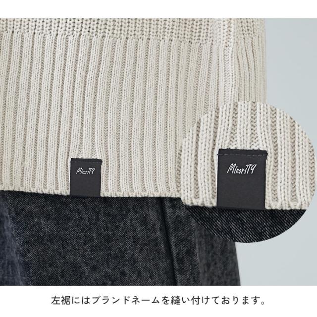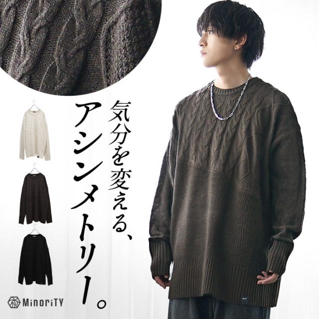 セーター メンズ ロング丈 ニット メンズ ケーブルニット アシンメトリー プルオーバー オーバーサイズ ロング ビッグシルエット ニットセーター 長袖 無地 黒 ブラック 白 ホワイト ブラウン ゆったり 秋 冬 秋服 冬服 新作 メンズファッション マイノリティ minority
