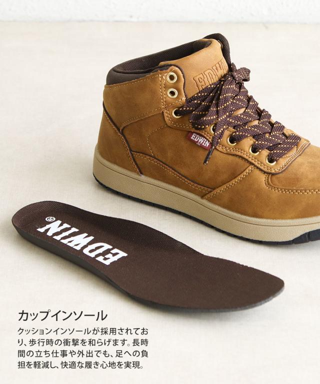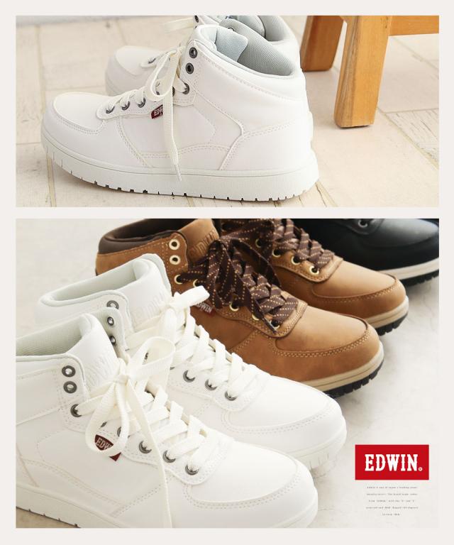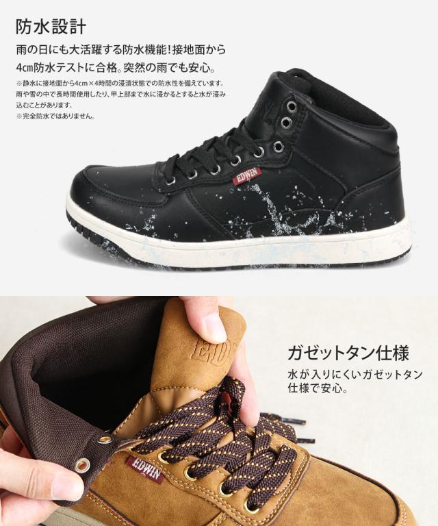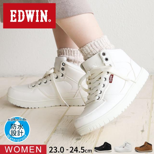 エドウィン スニーカー レディース 防水 防滑 ミッドカット 履きやすい 疲れにくい おしゃれ カジュアル 大人 女性 通勤 通学 タウンユース 普段履き ミドルカット カジュアルシューズ レインシューズ 紐靴 ブーツ 靴 シューズ 黒 ブラック 白 ホワイト キャメル EDWIN 7674