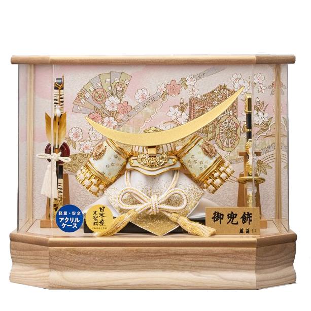 五月人形 ケース飾り兜 山科 伊達政宗の兜 幅42cm 六角パノラマアクリルケース WO金ぼかし 235-737 端午の節句 子どもの日