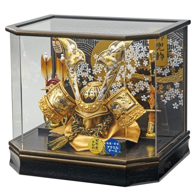 五月人形ケース飾り兜 嵯峨 盛上げ大鍬型の兜 幅43cm 六角パノラマアクリルケース ブラック255-711 端午の節句 子どもの日