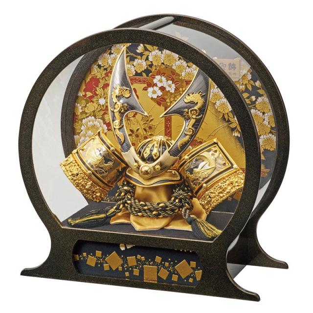 五月人形 ケース飾り兜 剣竜 盛上げ大鍬型の兜 幅35cm 手鏡型アクリルケース 彩色金LG 255-746 端午の節句 子どもの日