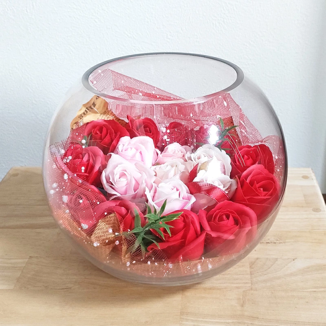 フラワー 花 ガラス クリスマスアレンジ ガラス ギフト クリスマス 飾り ガラスボウル プレゼント ハンドメイド 送料無料