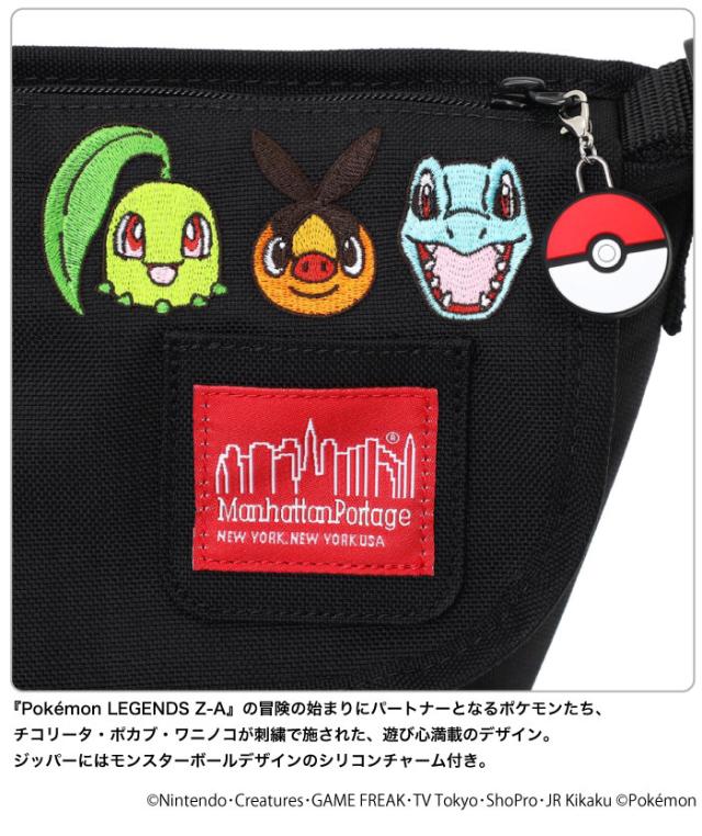 マンハッタンポーテージ ナイロン メッセンジャーバッグ フラップジッパーポケット ポケモン 25 ZA チコリータ ポカブ ワニノコ 刺繍 ショルダーバッグ ポケットモンスター 通勤 通学 鞄 かばん Manhattan Portage MP1603FZPPKMN25ZA 正規品