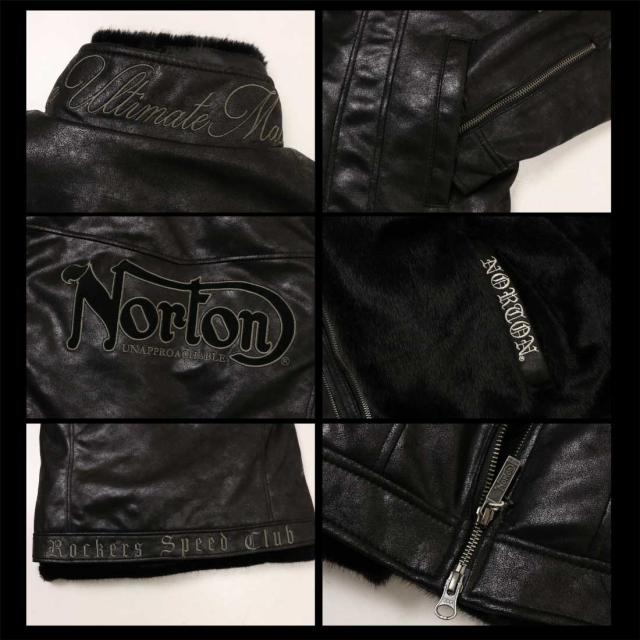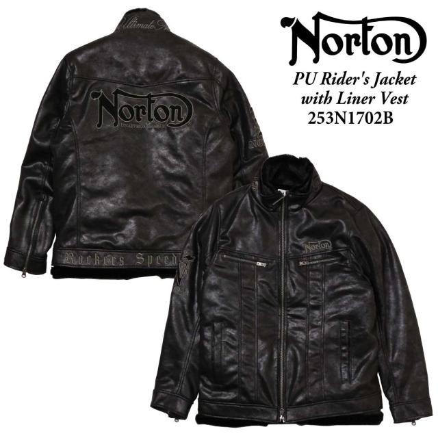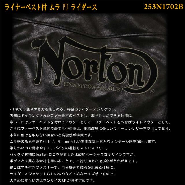 Norton ノートン 服 アウター ライダースジャケット 合成皮革 253N1702B ライナーベスト付 ムラ PU ライダース ヴィーガンレザー ロゴ メンズ アメカジ