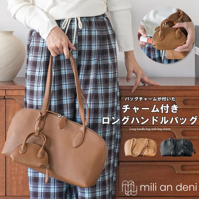 春新作 バッグチャーム付きロングハンドルバッグ 鞄 ショルダーバッグ ハンドバッグ インナーポケット バッグチャーム レディース バッグ 春夏 ミリアンデニ b61120