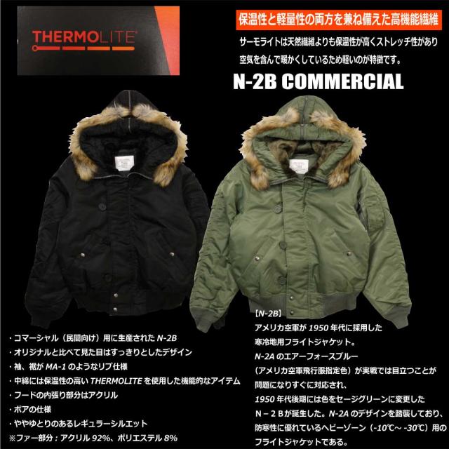 AVIREX アヴィレックス アビレックス アウター 783-5952029 N-2B COMMERCIAL保温 THERMOLITE フード ボア レギュラーシルエット メンズ ミリタリー ジャケット