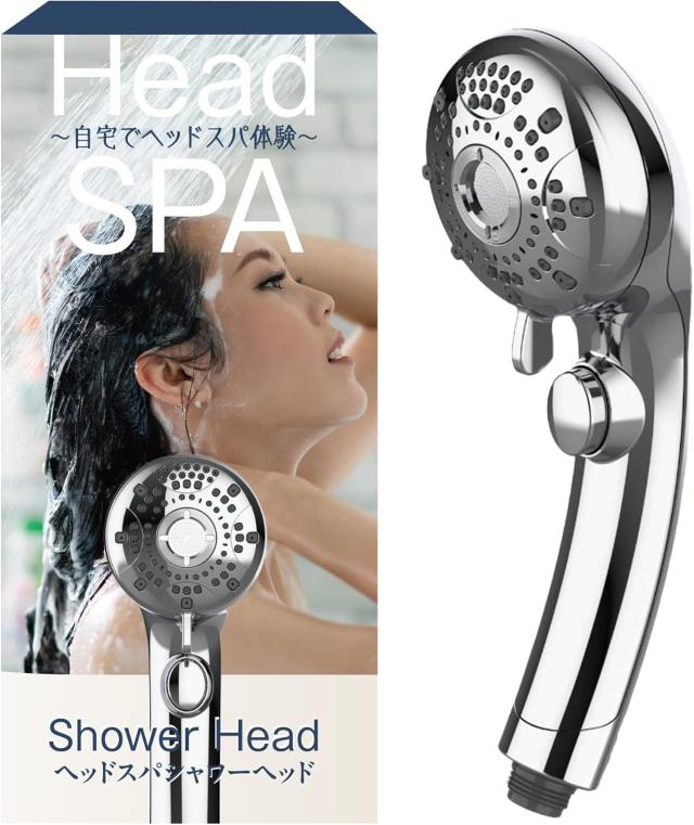 【自宅でヘッドスパ体験】ヘッドスパ シャワーヘッド【6段階水流・ポイントマッサージモード搭載】マイクロナノバブル G1/2規格 6モード バス用 手元止水 (シルバー)