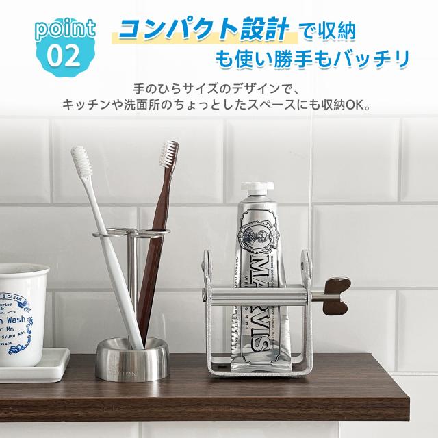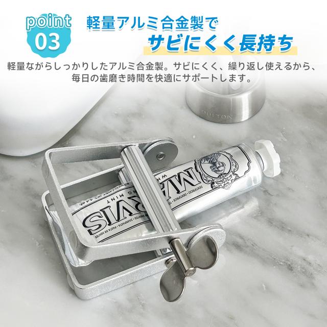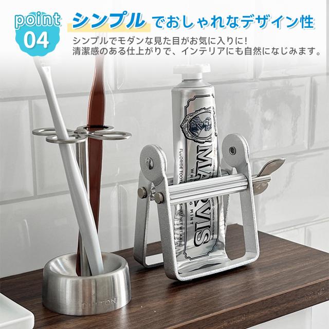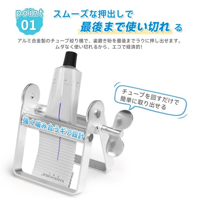 【スムーズな押出しで最後まで使い切れる】アルミ合金製のチューブ絞り機で、歯磨き粉を最後までラクに押し出せます。ムダなく使い切れるから、エコで経済的!