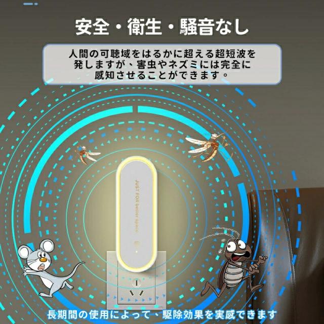 超音波駆蚊器 蚊取り 虫よけ 小型 超音波 蚊よけ 蚊駆除 蚊よけ 器 コンセント式 LEDライト 害虫対策 ネズミ 蚊ゴキブリ