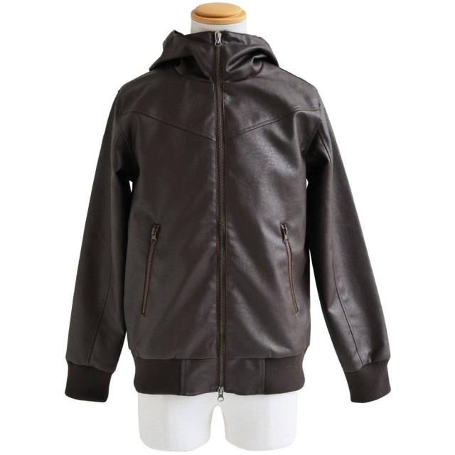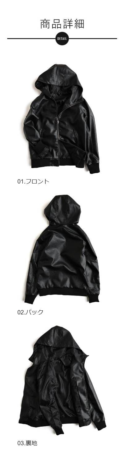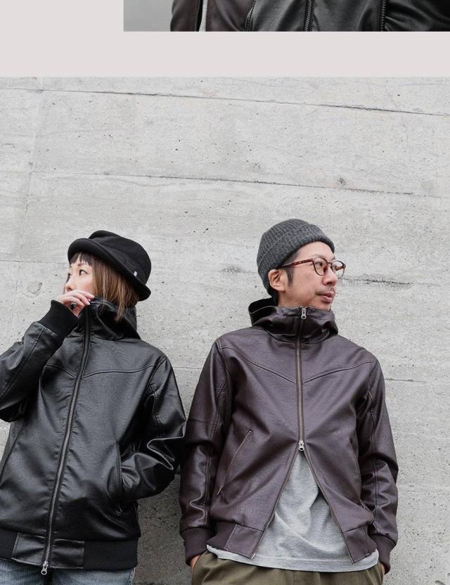 ブルゾン フェイクレザー レディース メンズ ライダース パーカー 軽い 暖かい ハイネック フード YKK PUレザー 袖リブ バイク アウター レザー ジャケット カッコイイ カジュアル バイク パティ