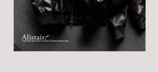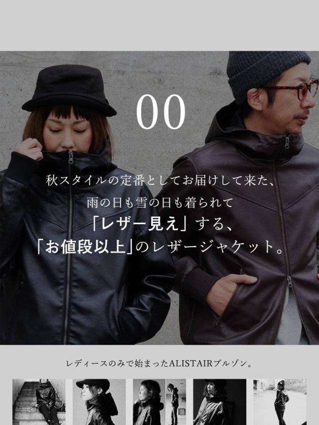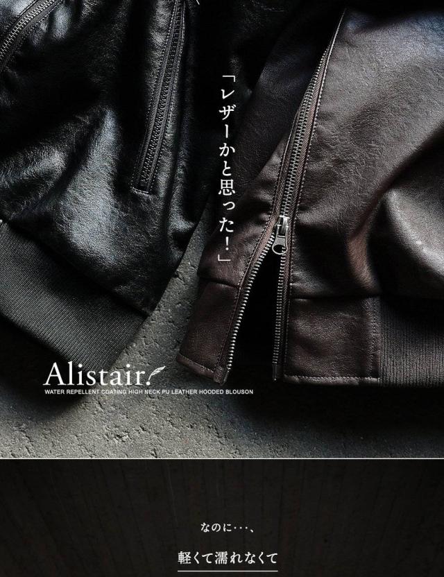 ブルゾン フェイクレザー レディース メンズ ライダース パーカー 軽い 暖かい ハイネック フード YKK PUレザー 袖リブ バイク アウター レザー ジャケット カッコイイ カジュアル バイク パティ ALISTAIR アリステア