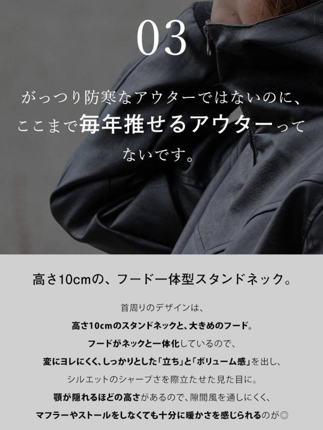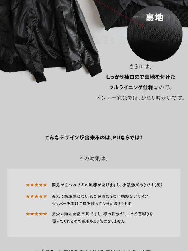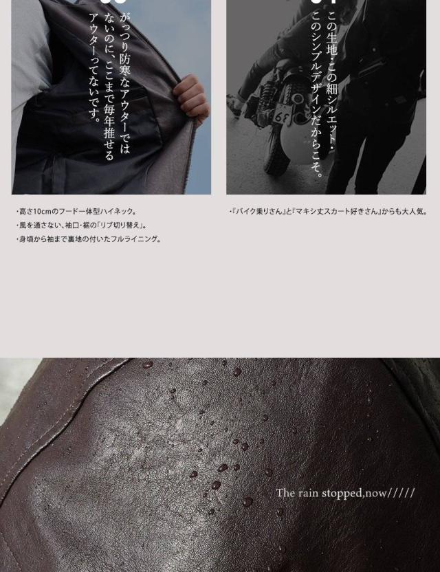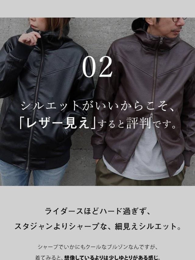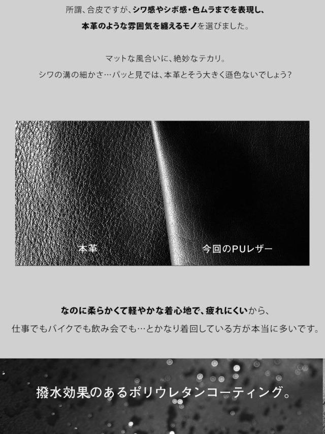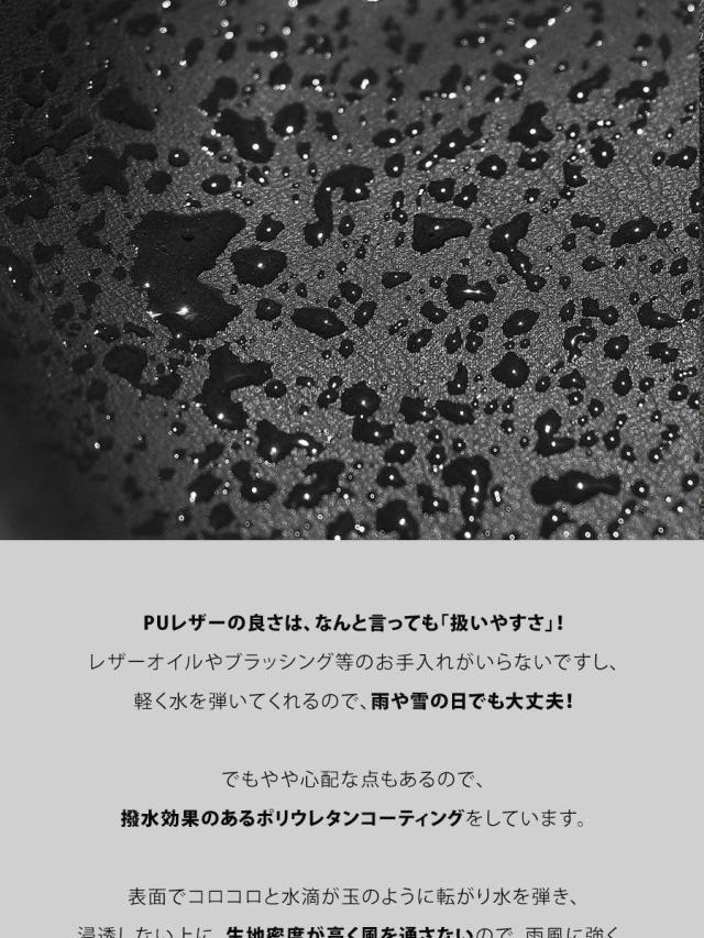 ・雨の日も雪の日も着られる、本革のような質感を表現した肉厚PUレザー。