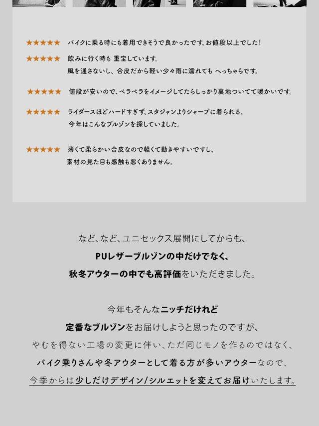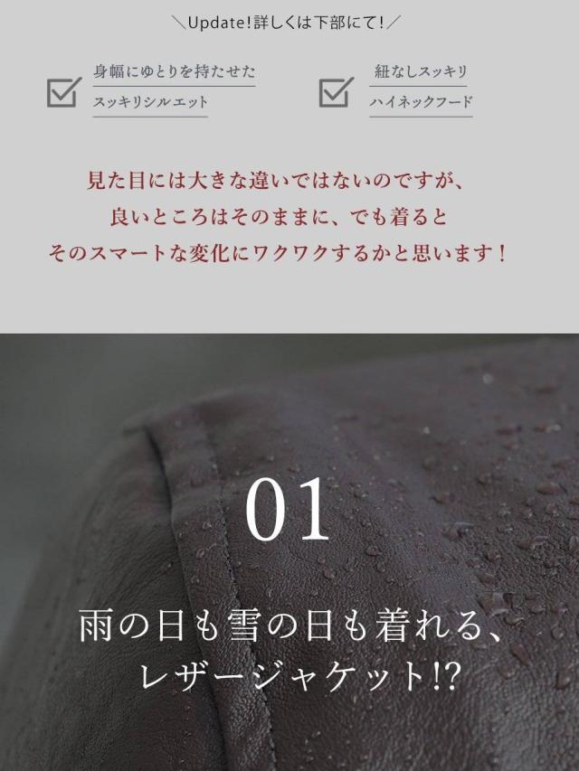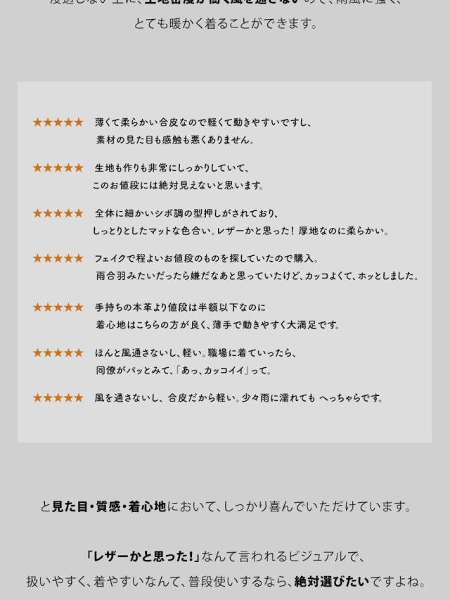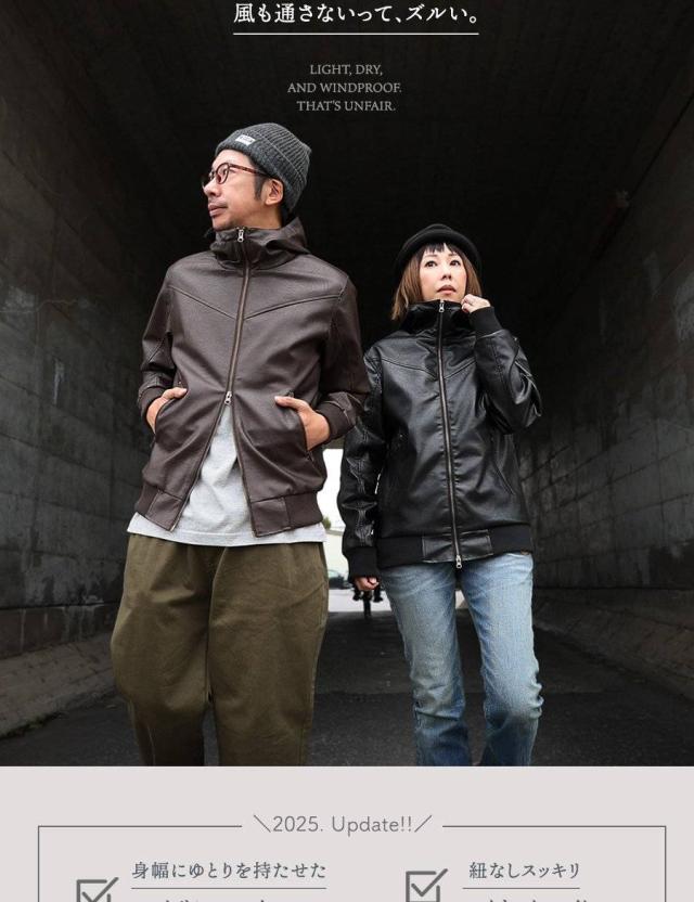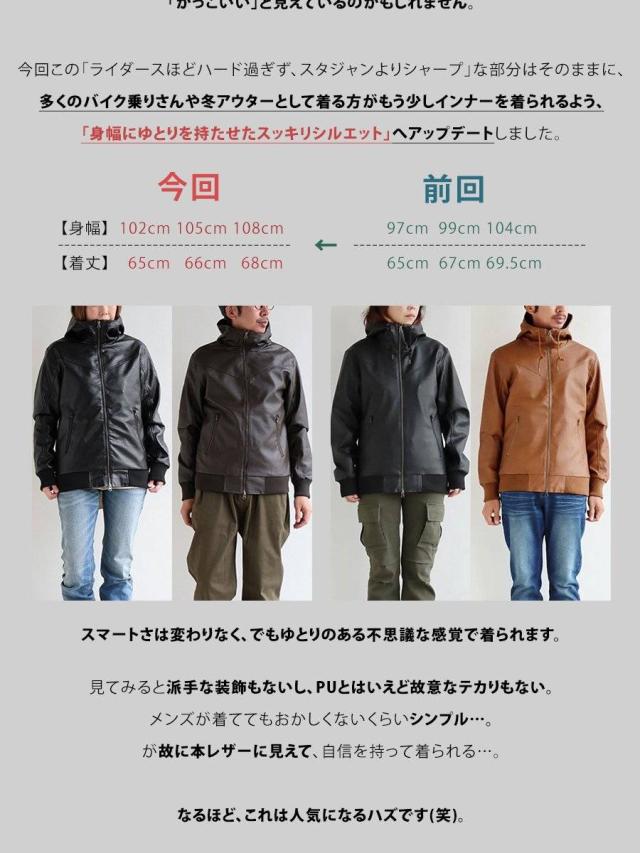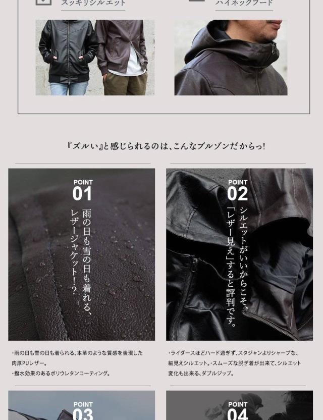 ・雨の日も雪の日も着られる、本革のような質感を表現した肉厚PUレザー。