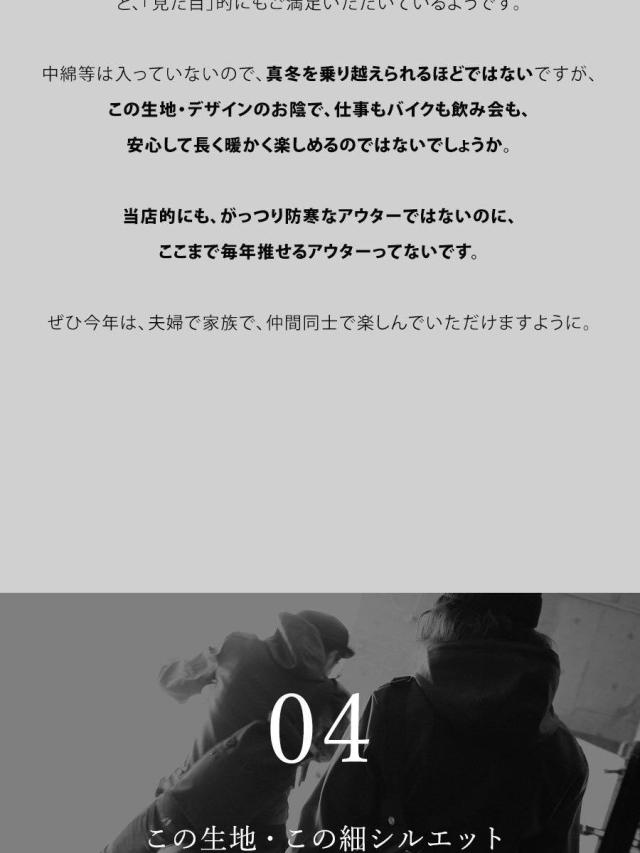 ・ライダースほどハード過ぎず、スタジャンよりシャープな、細見えシルエット。
