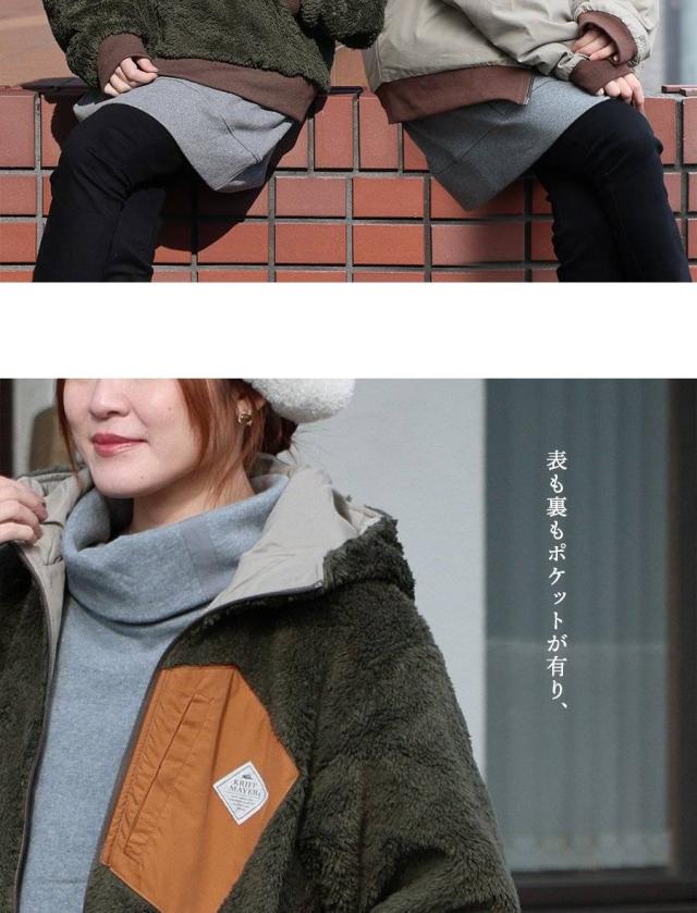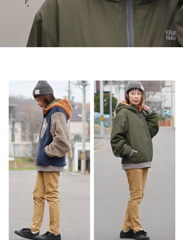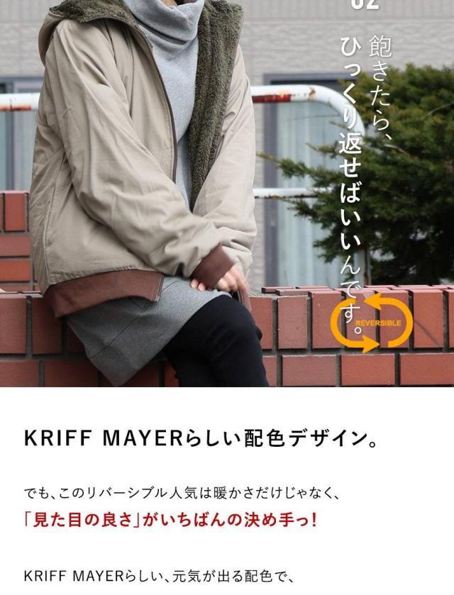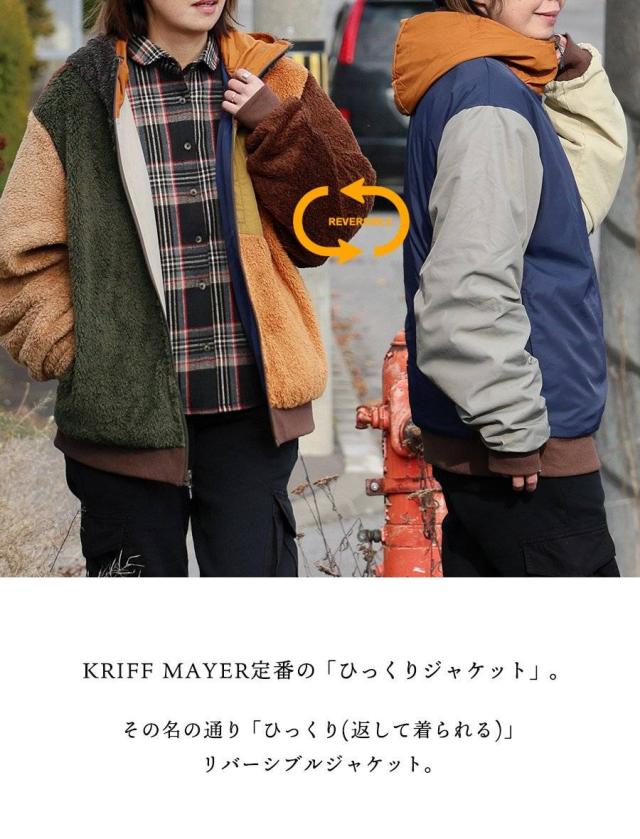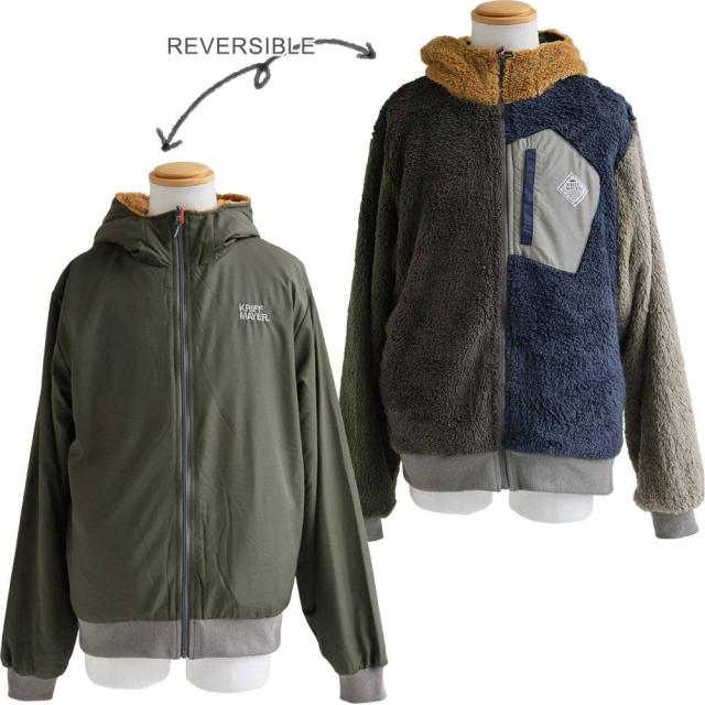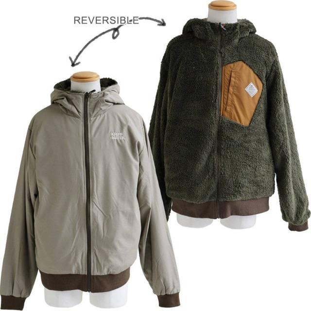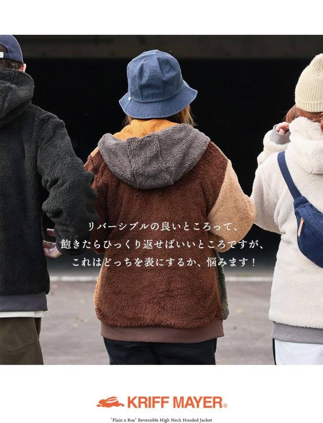 KRIFF MAYER クリフメイヤー アウター ジャケット ひっくりジャケット ハイネック フード パーカー リバーシブル 無地 ボア ポリエステル 防寒 メンズ レディース メンズライク カジュアル アウトドア 冬 冬服 大き目 パティ