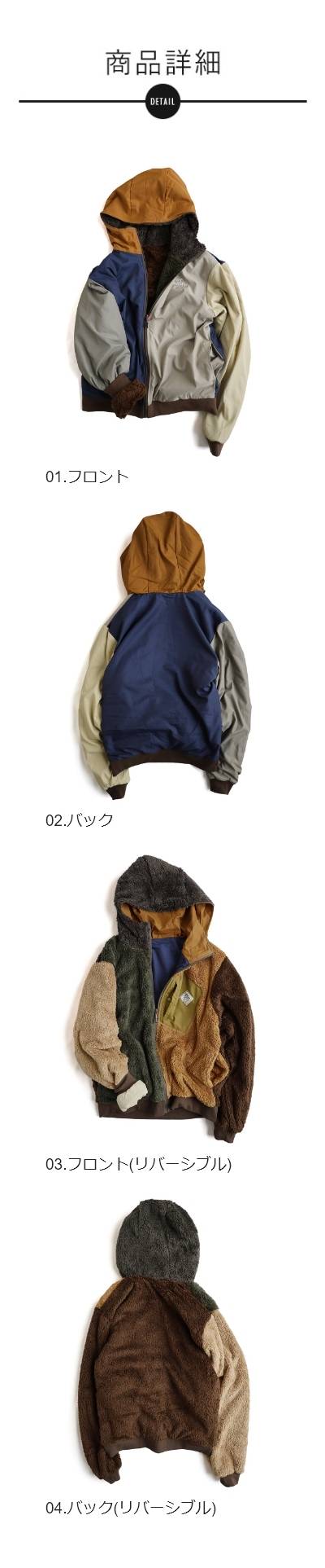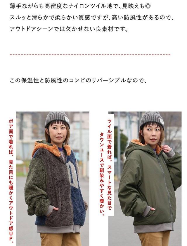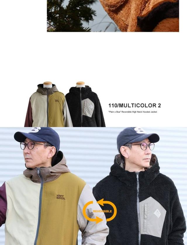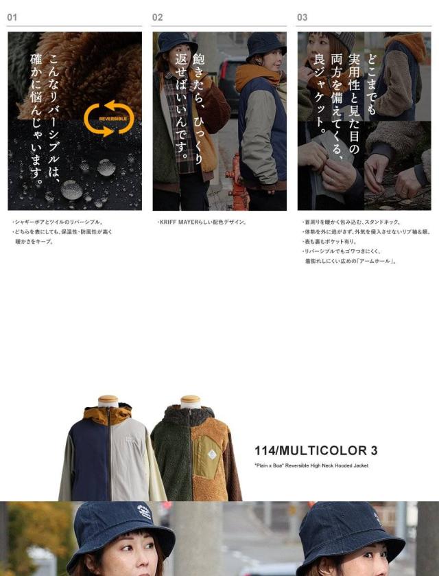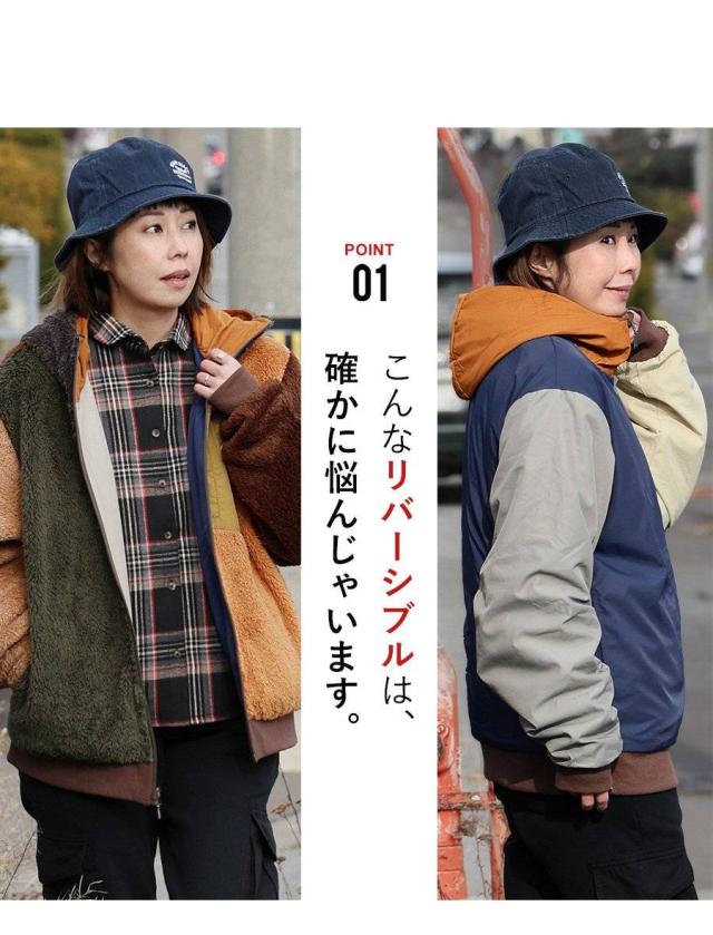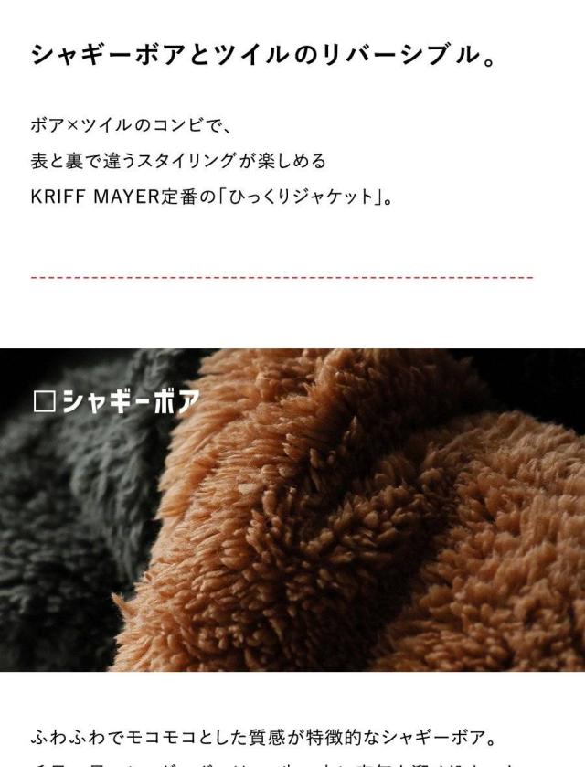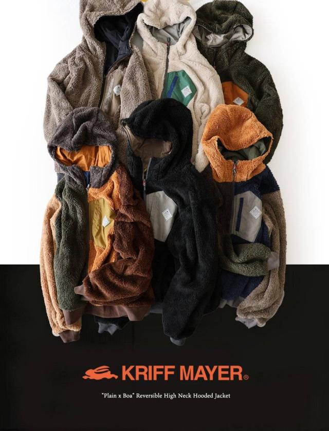 KRIFF MAYER クリフメイヤー アウター ジャケット ひっくりジャケット ハイネック フード パーカー リバーシブル 無地 ボア ポリエステル 防寒 メンズ レディース メンズライク カジュアル アウトドア 冬 冬服 大き目 パティ