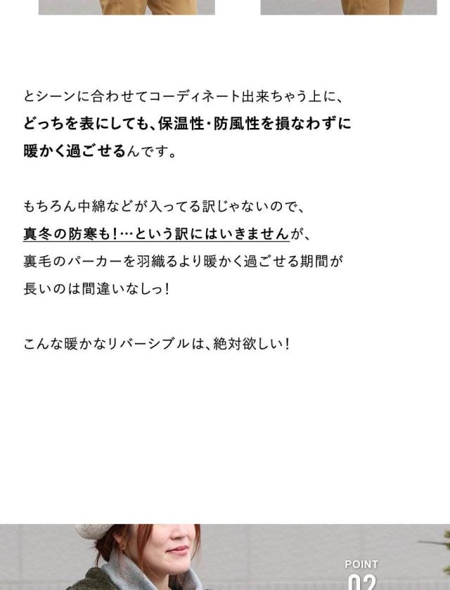 ・どちらを表にしても、保温性・防風性が高く暖かさをキープ。