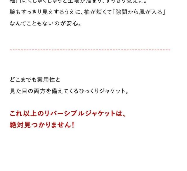 ・リバーシブルでもゴワつきにくく、着膨れしにくい広めの「アームホール」。