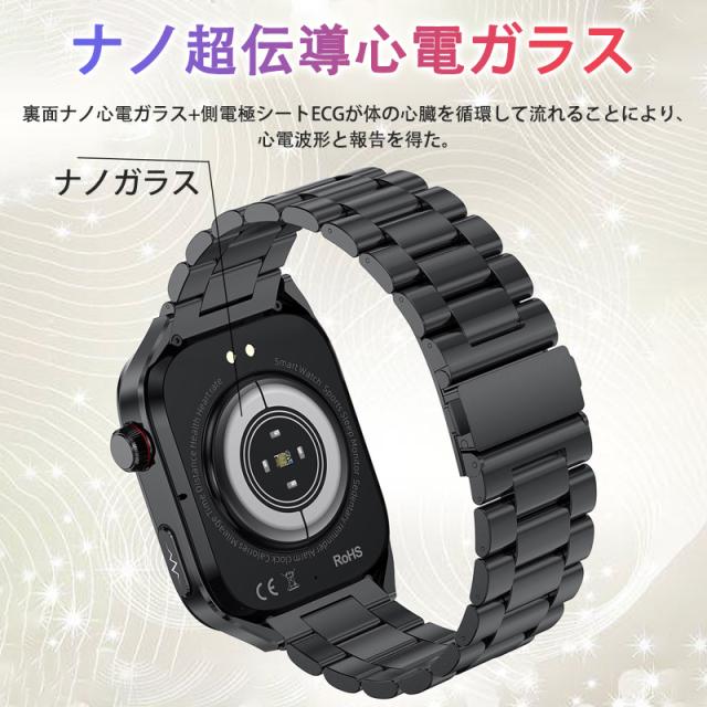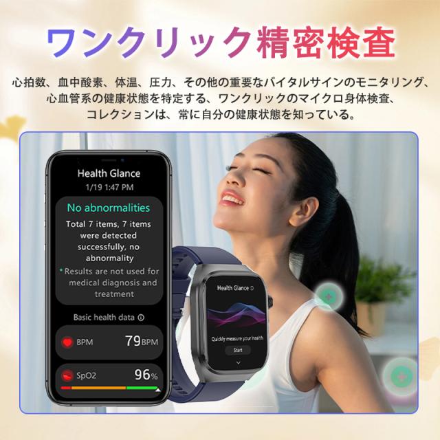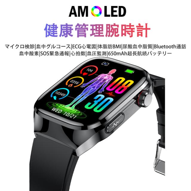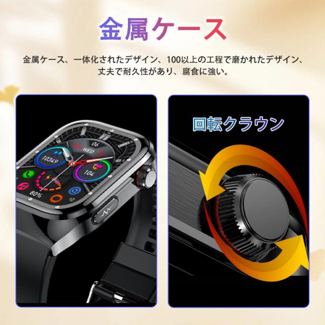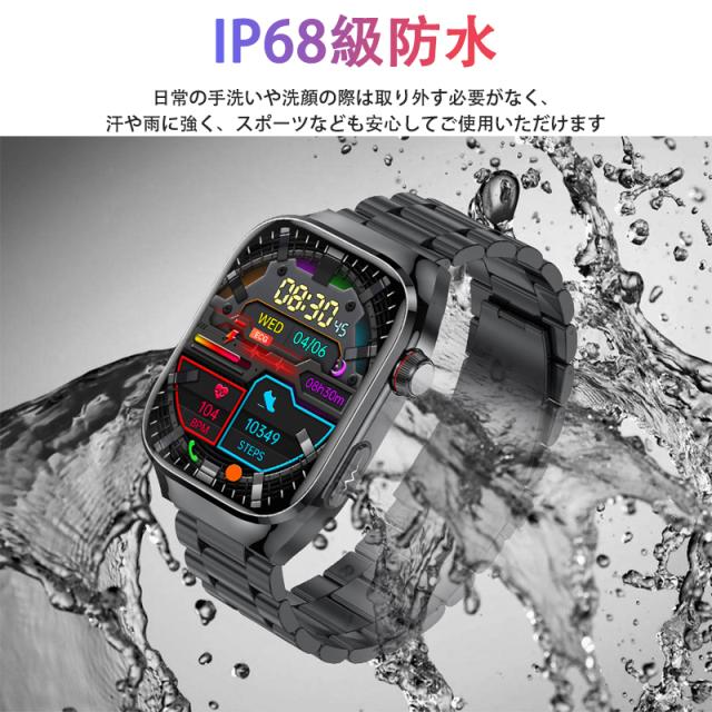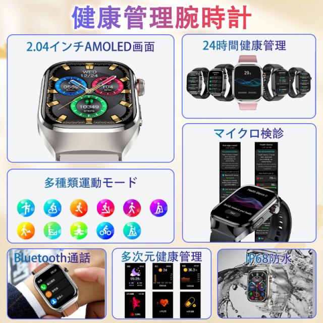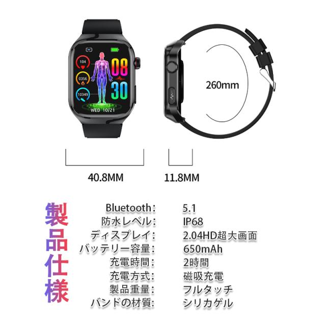 スマートウォッチ 血糖値 日本製センサー 尿酸値 血圧測定 血中酸素 脂質 睡眠/体温/ストレス監視 心拍数 活動量計 歩数計 iPhone Android対応 IP68防水 2.04インチ 天気予報 目覚まし時計 腕上げ点灯 音楽制御 SOS緊急連絡 座り過ぎ通知 女性生理管理 音声アシスタント スマホ探し 日本語取扱説明書