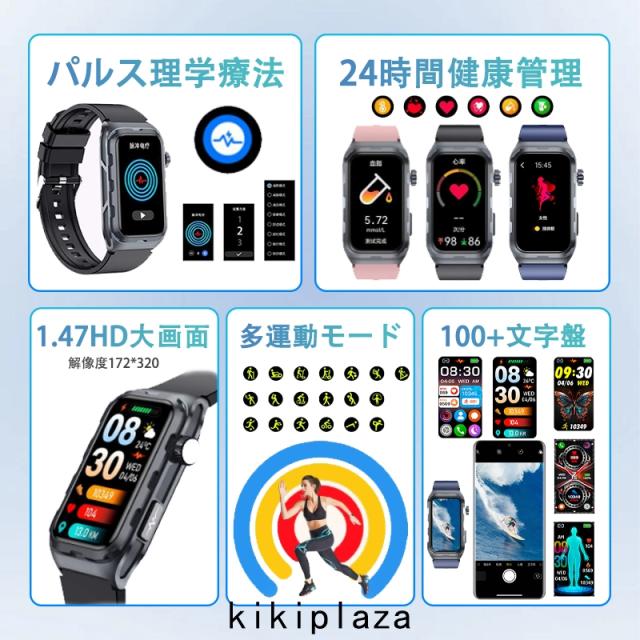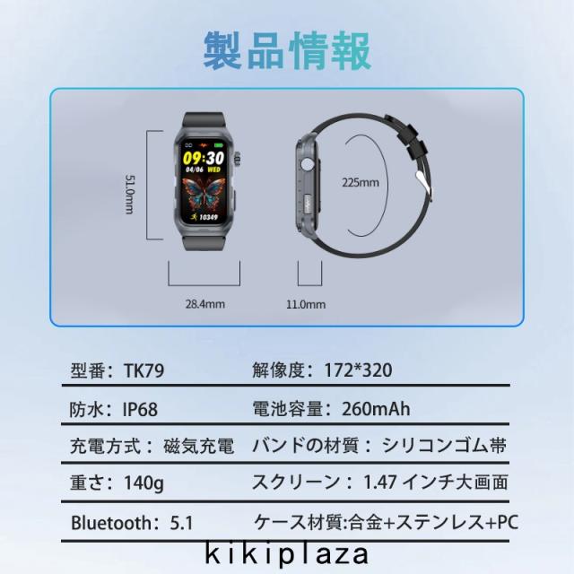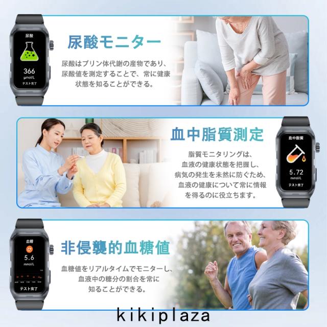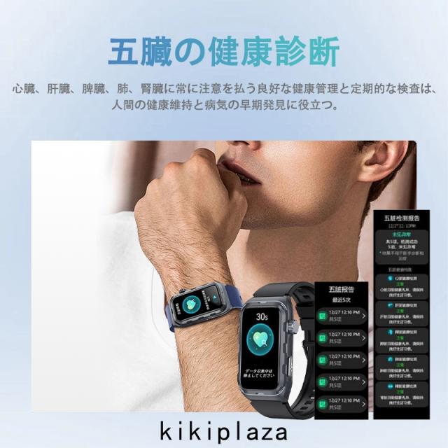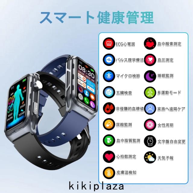 スマートウォッチ 五臓健康管理 血糖値 血圧測定 血中酸素 尿酸 血中脂質 心拍数 BMI 心電図 睡眠監視 体温検知 呼吸訓練 女性生理管理 リモートケア 多運動モード 文字盤自由設定 通話機能付き 着信&メッセージ通知 iphone Android対応 日本語説明書付き