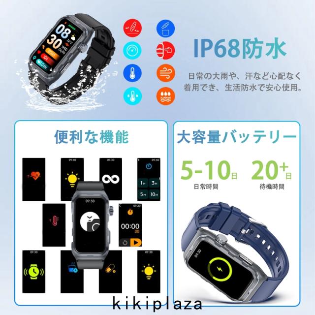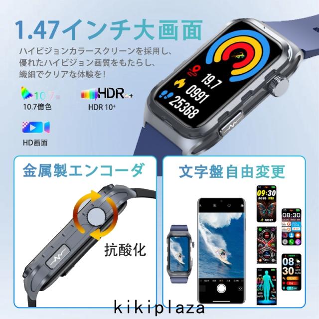 【新登場・1.47インチ大画面】 スマートウォッチ従来の製品より外観、中身、性能方面より、完全バージョンアップしました!1.47インチ大画面を採用して、驚くほど鮮明で、美しくリアルな画面を実現しました。画面の明るさ調節も可能で、強い日差し下にも視認性が高く、見やいです。フルタッチパネルを採用し、老眼の方にも見やすい! 高精度な大画面で通知や文字が一目瞭然に表示される。上下左右のスライド操作で機能の切替も簡単です。専用日本語取扱説明書を各機能や操作に記載させていただき、完全なるマニュアルがあるこそ安心できます!特に初心者や年配の方におすすめ!